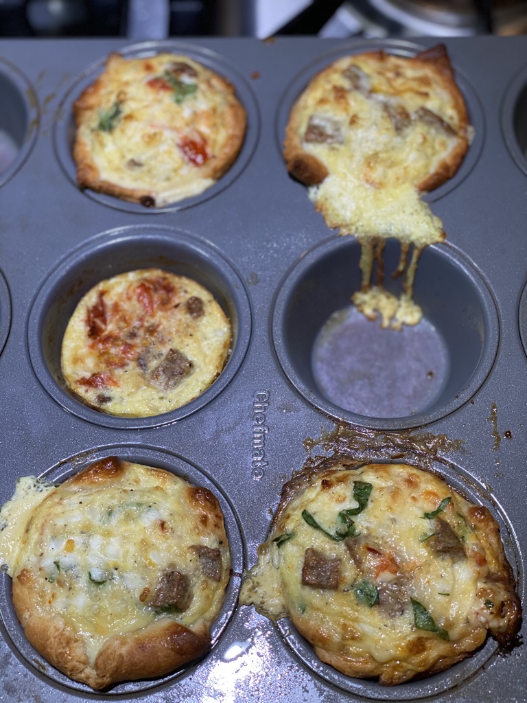 Pop the muffin tin into the oven on the center rack. Bake for 15 minutes or until the center is set. Let cool briefly in the muffin tin. Run a knife around the edge of them to loosen. Let cool and store in a sealed container in the refrigerator.